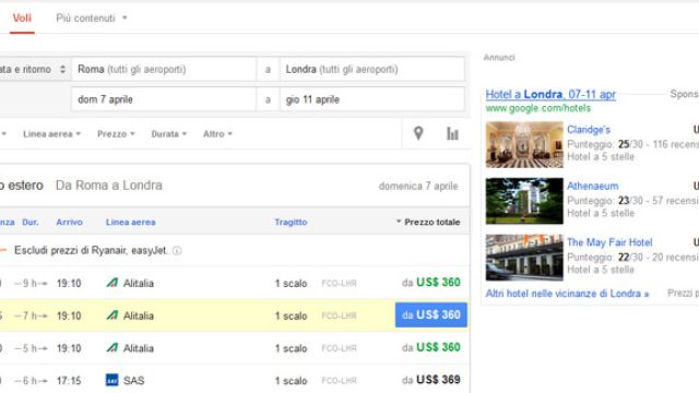 Google Flights Search “vola” anche in Italia