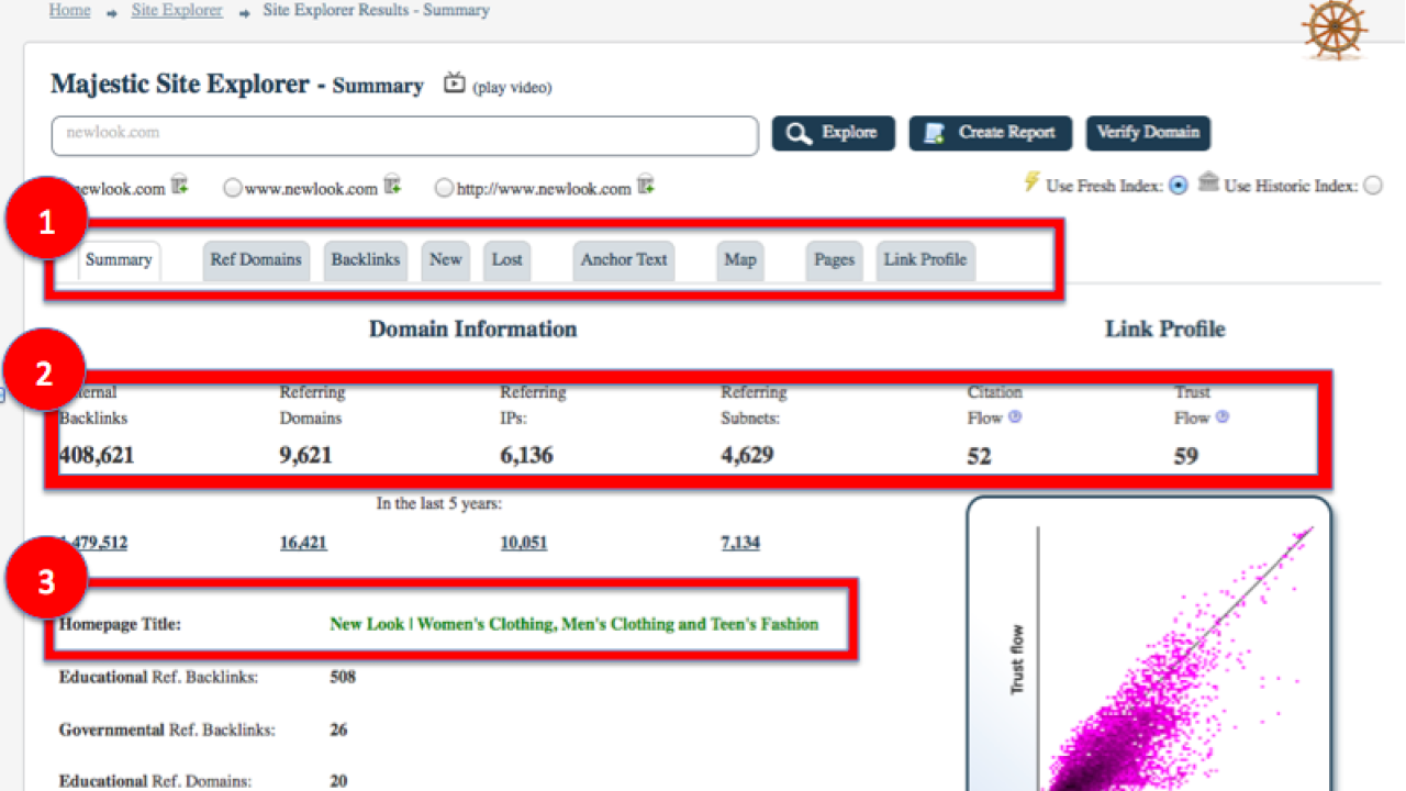 I Referring Domains sono stati spostati prima dei backlink, dato che gran parte degli utilizzatori di MajesticSEO analizzano prima questo dato, rispetto ai singoli link.