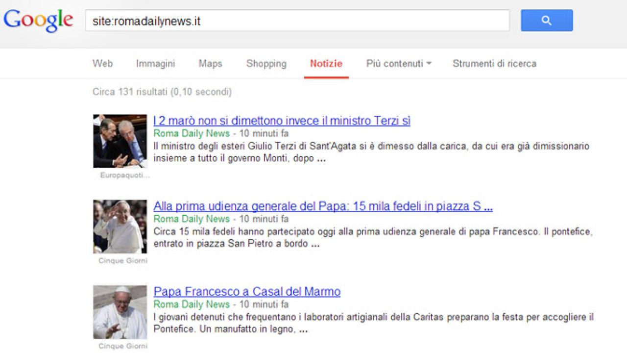 Solo poco tempo fa, abbiamo ricevuto la notizie che RomaDailyNews.it è stato finalmente accettato in Google News e, come si vede dall’immagine in alto, gli articoli sono già stati presi!